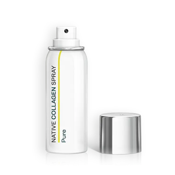Our Native Collagen Spray Pure regenerates and repairs the skin using soluble native collagen, natural moisturizing factors (NMFs), and Panthenol. These active ingredients moisturize the skin, smooth wrinkles and calm irritated skin immediately.